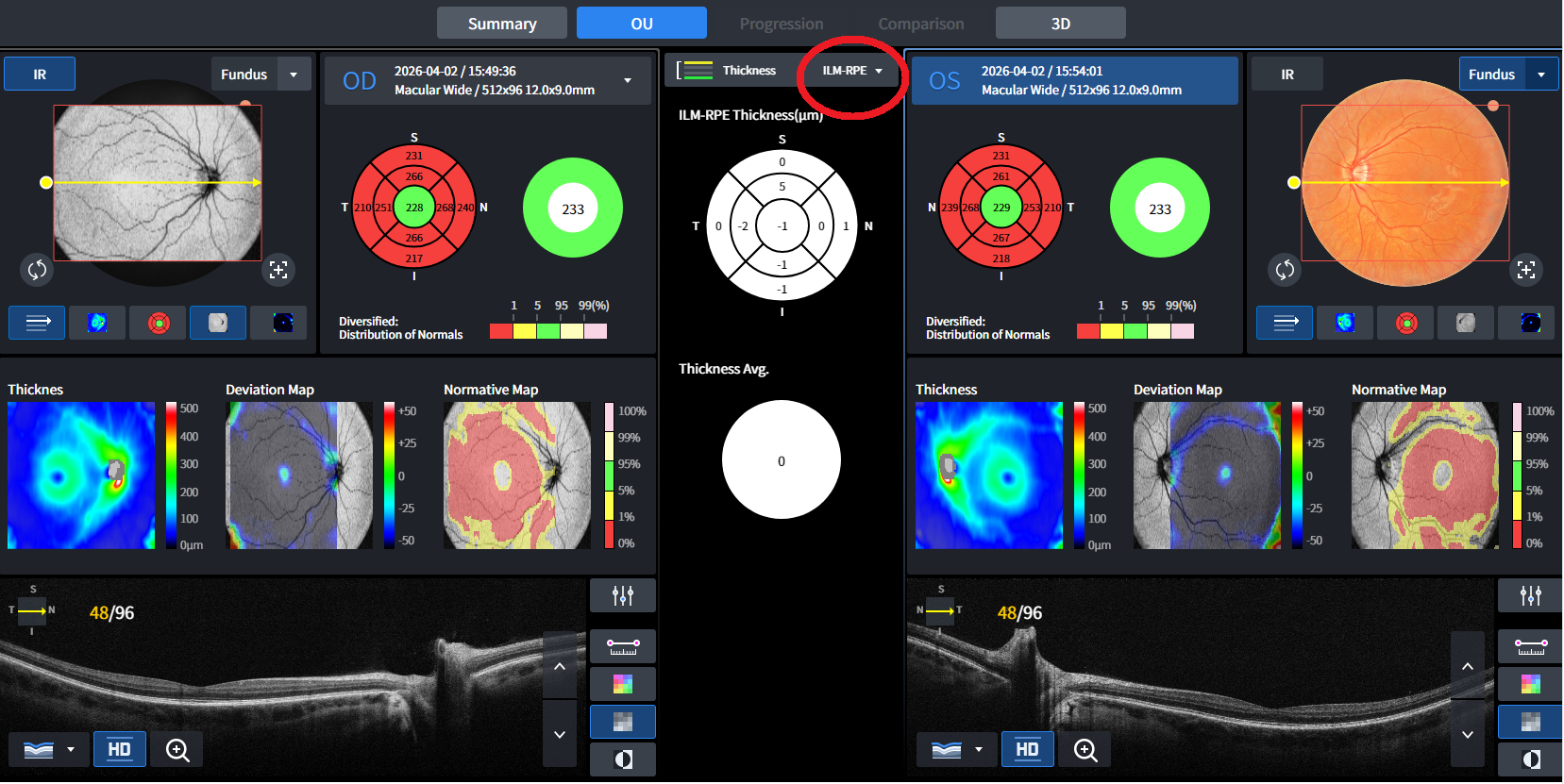 Danke für deine Antwort. Anbei noch zwei Auswertungen um die Dicken der Makula genauer zu differenzieren. Die Kundin wurde von mir mittlerweile mit einer zeitnahen Dringlichkeit und einem Hinweis, zu einem spezialisierten AA oder in eine Augenklink zu gehen, weiter geschickt.