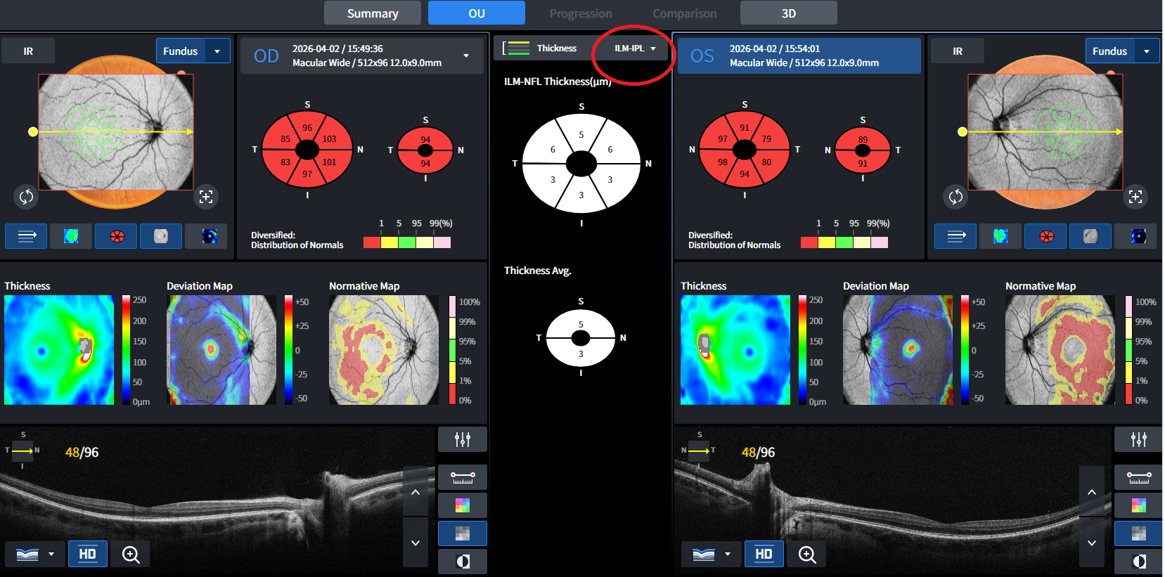 Kurze Frage zum Befund: Was zeigt der Makula-Scan unten genau - den GCL/IPL-