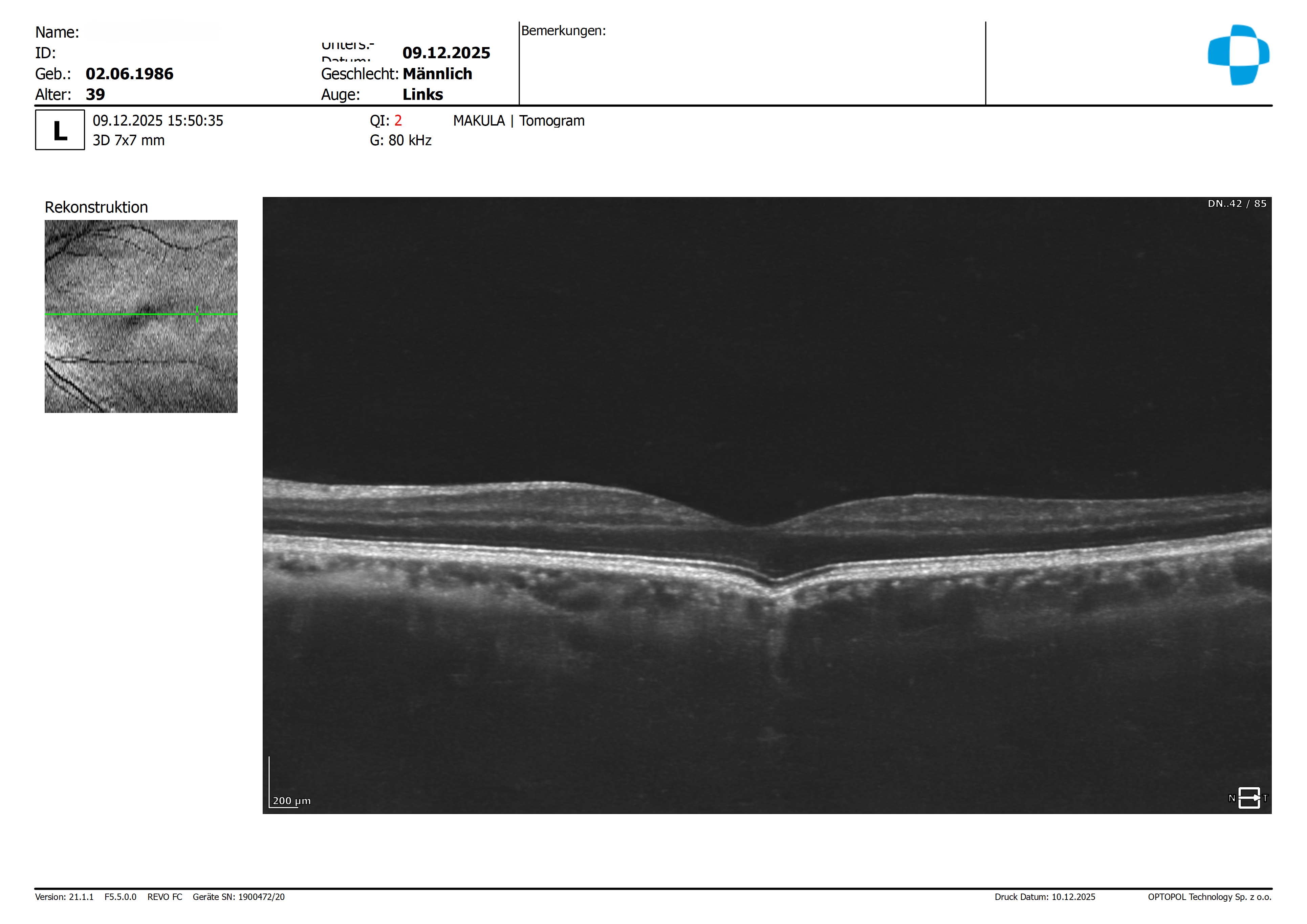Wie aus den Bildern ersichtlich, ist die linke Foveola abweichend zu der Norm.