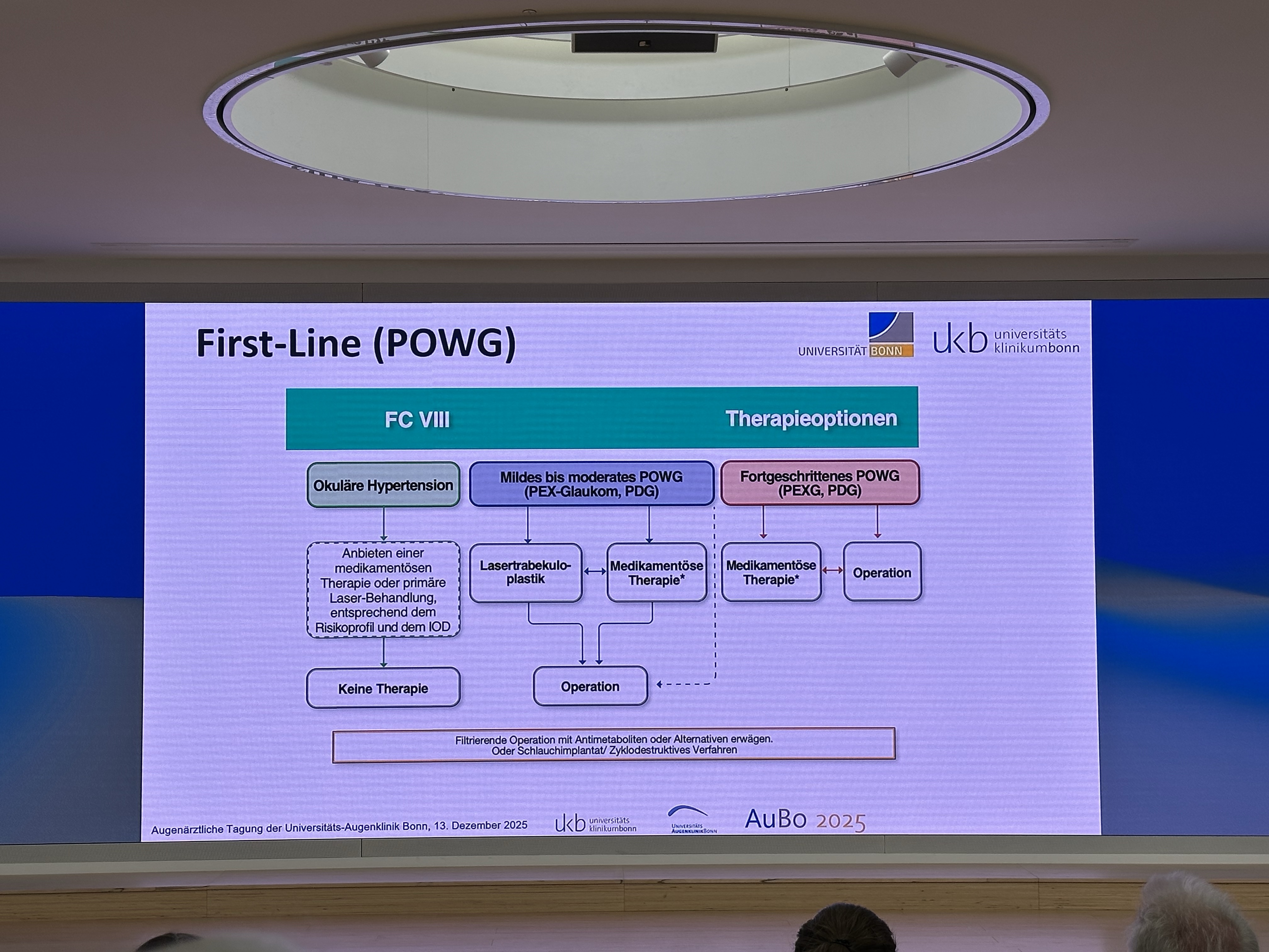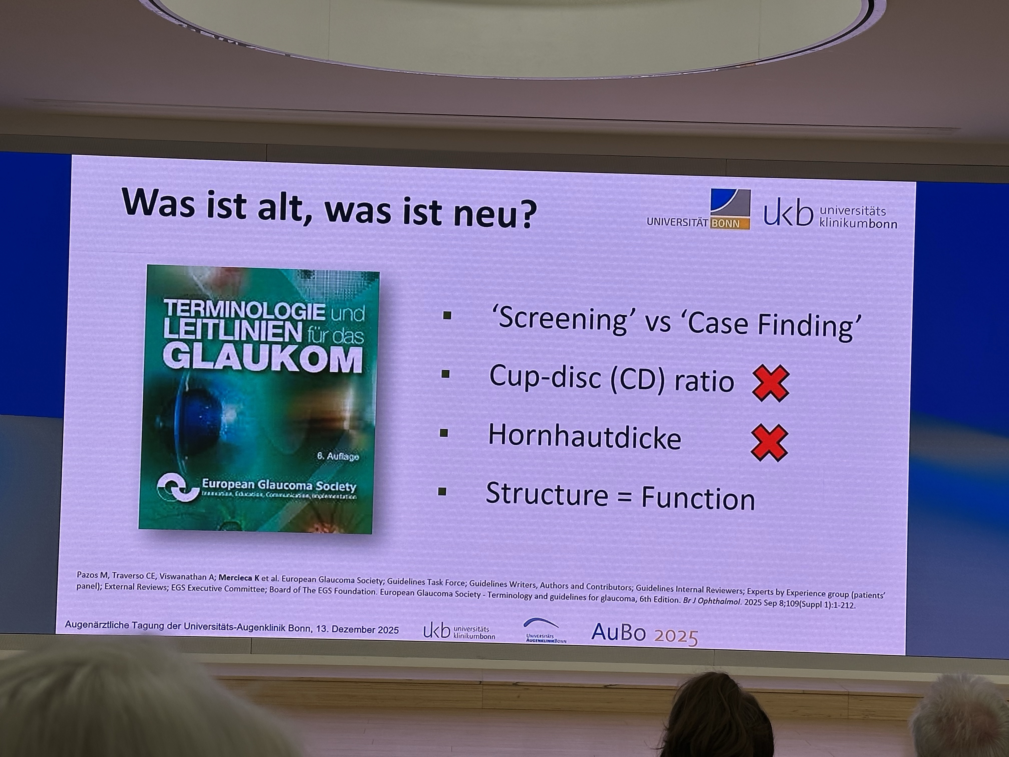 Ich war am 13.12. auf einer Fortbildungsveranstaltung der UKB. Dort wurden im Rahmen eines Kurzvortrages die Änderungen in den ärztlichen Leitlinien und Neuerungen in der Glaukomdiagnostik und -behandlung vorgestellt: