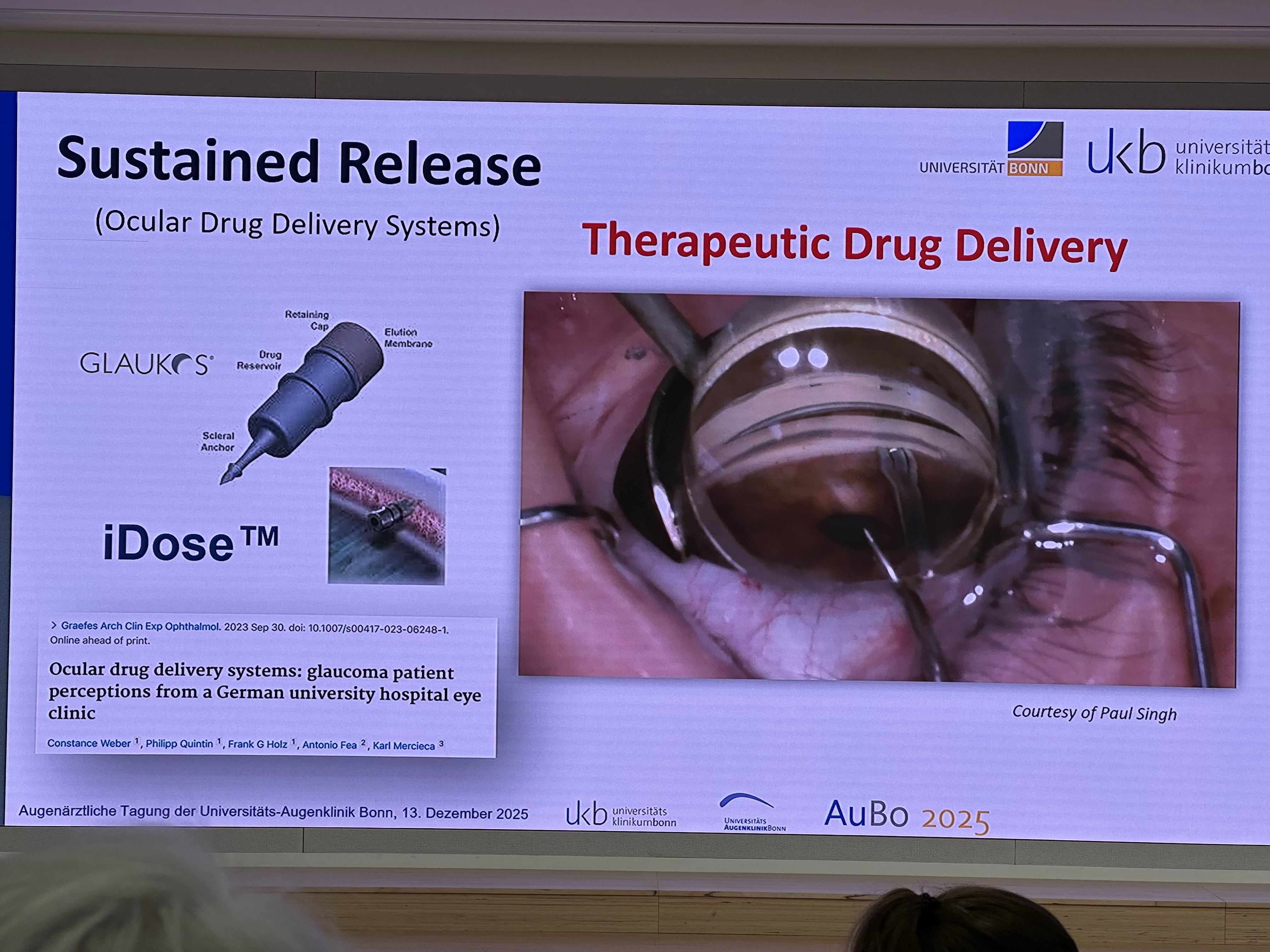 Das Prostaglandin-Implantat in der Vorderkammer stellt ein seit Jahren erwartetes und grundsätzlich vielversprechendes Konzept dar. Allerdings zeigt sich auch hier, dass die klinische Realität komplexer ist, als es teilweise dargestellt wird. Die Anatomie der Vorderkammer sowie insbesondere der Endothelzellstatus spielen eine entscheidende Rolle. In klinischen Studien wurden irreversible Endothelzellverluste mit konsekutiver Hornhautdekompensation als relevante Komplikationen beschrieben, ebenso entzündliche Reaktionen und eine sekundäre Kataraktentwicklung. Gerade der Endothelzellverlust bereitet erhebliche Sorgen, da er im Extremfall eine (Teil-)Hornhauttransplantation erforderlich machen kann. Vor diesem Hintergrund hat die Firma AbbVie das Konzept im vergangenen Jahr in Europa eingestellt. In den USA ist das Implantat weiterhin zugelassen, in Europa jedoch bislang nicht. Trotz dieser Einschränkungen bleibt die weitere Entwicklung dieses Ansatzes aus wissenschaftlicher Sicht interessant, und eine vertiefte Erforschung wäre wünschenswert.